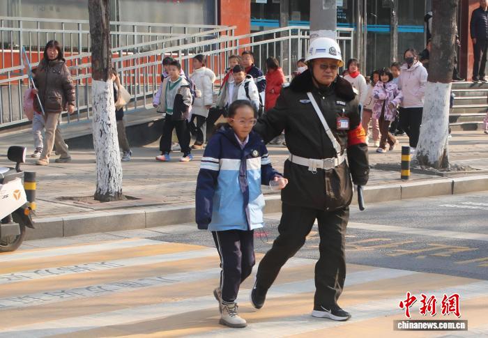 图为上教顶峰时段寻视职员护收教死脱止黑色斑马线。 弛楠 摄